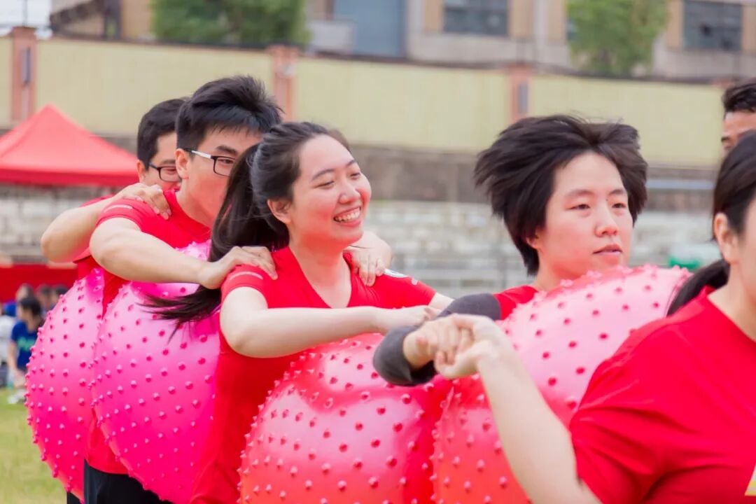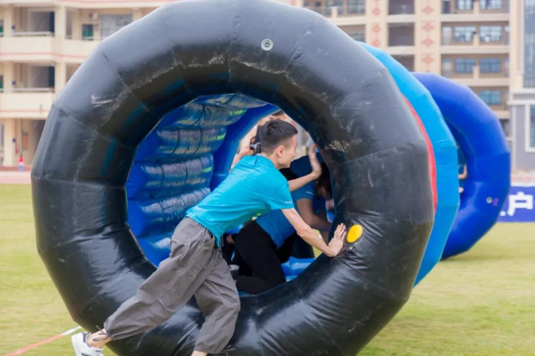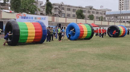 每支隊伍都不想輸在起跑線上,滾筒外的兩名隊員要負責(zé)掌握滾筒的方向,內(nèi)部的隊員則要保證自己不掉出滾筒的前提下,盡可能快的轉(zhuǎn)動滾筒……這是一個需要團隊高度配合的項目,大家的步調(diào)必須和諧一致,不然就會出現(xiàn)以下的情況……