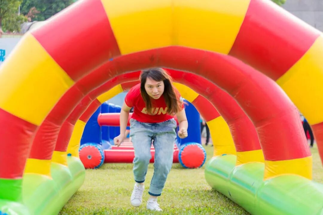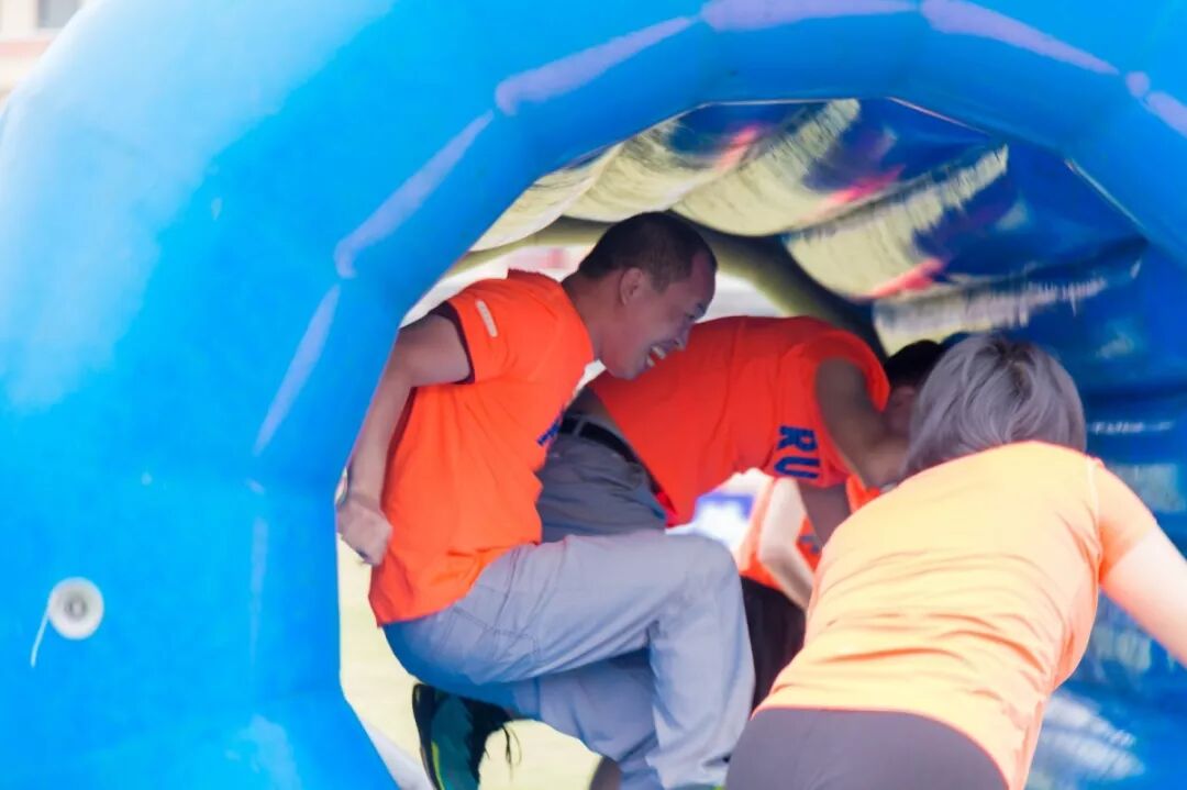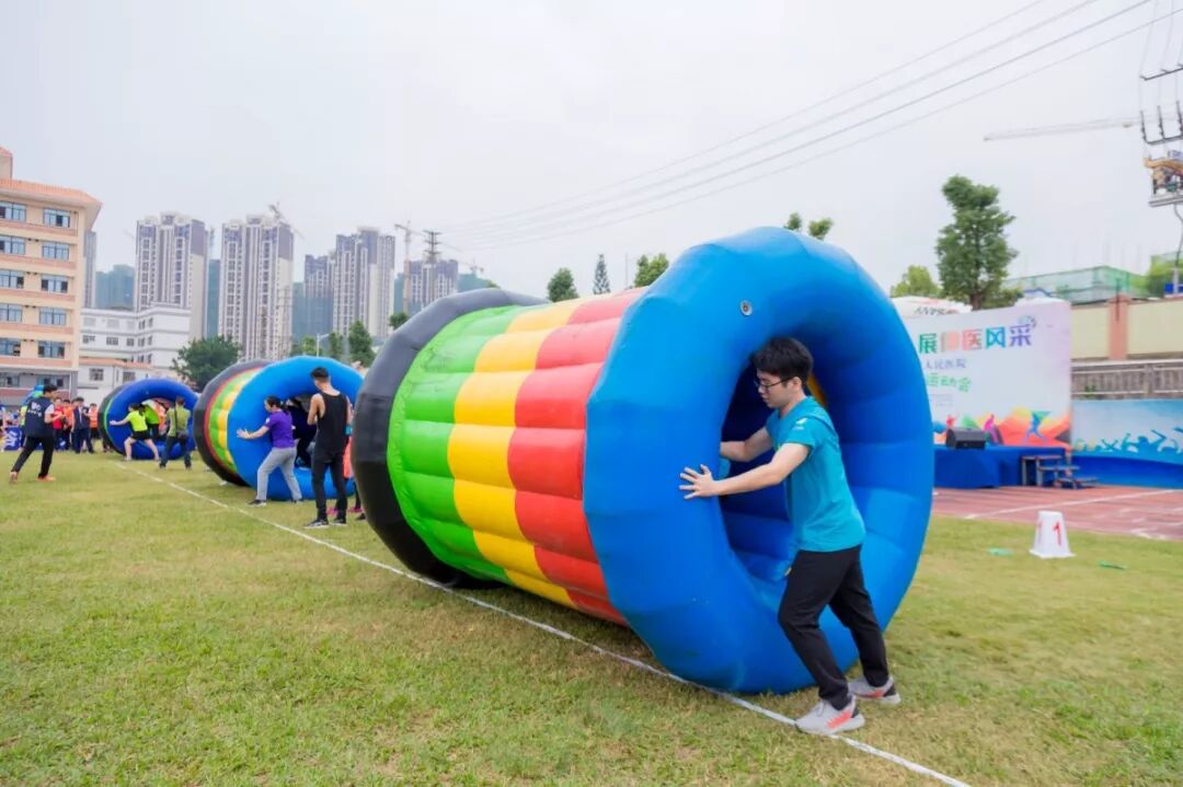 呈現(xiàn)在運動員面前的是,各種充氣障礙,有的需要隊員附身通過,有的需要選手奔跑越過。每一種考驗都是對體力的測試和速度的挑戰(zhàn)~最終外一科在本輪拿下了第一名的好成績。