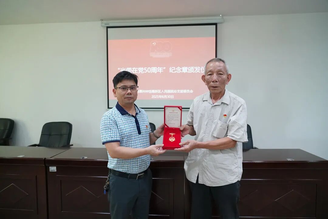 他表示,為黨齡達(dá)到50年的老黨員頒發(fā)“光榮在黨50年”紀(jì)念章,體現(xiàn)了黨中央和人民對(duì)老黨員歷史貢獻(xiàn)的高度評(píng)價(jià)和充分肯定。50年醫(yī)院巨變,我們的老黨員也是區(qū)人民醫(yī)院發(fā)展的親歷者、參與者、帶頭者和見(jiàn)證者,為改革、發(fā)展、穩(wěn)定付出了熱血、做出了犧牲。