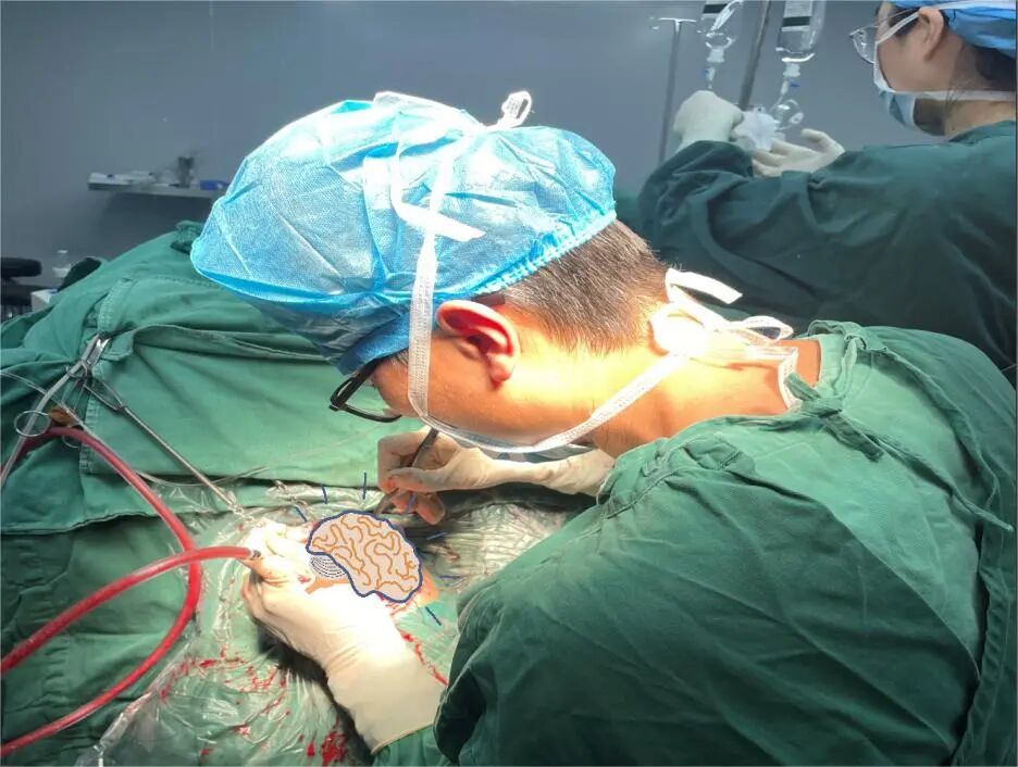 神經(jīng)外科主任熊洪奇帶領團隊在術中精細操作,盡可能地保護周圍正常的腦組織、提高術后生活質(zhì)量的前提條件下,完整分離并切除了顱內(nèi)腫瘤。
