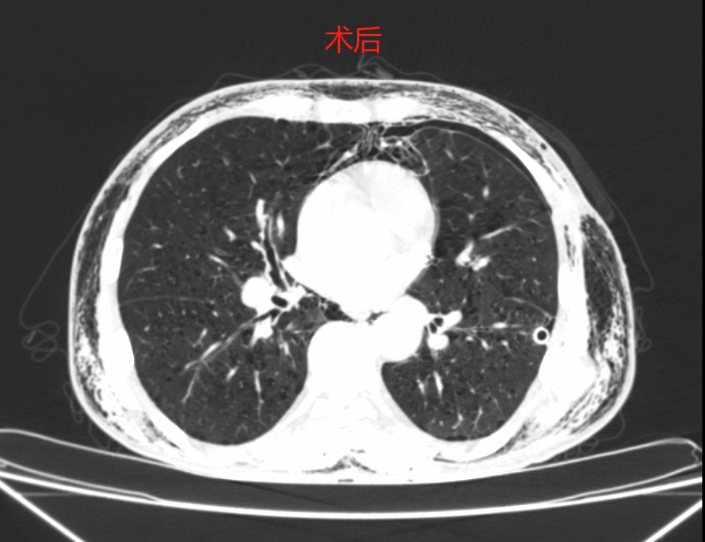 術(shù)后,陳大叔安全返回病房,術(shù)后第2天,攜引流瓶自如行走,復(fù)查影像資料提示肺組織復(fù)張良好,達到預(yù)期治療效果?,F(xiàn)已康復(fù)出院。